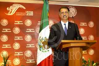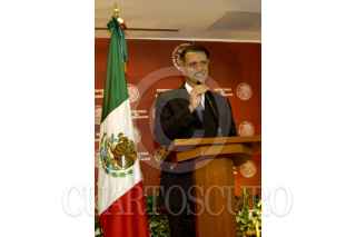 MÉXICO, D.F. 01AGOSTO2006.- El secretario de Gobernación, Carlos Abascal, durante la conferencia de prensa en la que llamó al jefe de Gobierno local, Alejandro Encinas, a garantizar el orden en la capital de la República. FOTO: CUARTOSCURO.COM