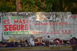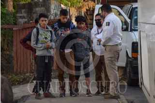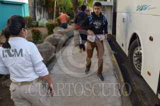 TAPACHULA, CHIAPAS, 23MARZO2021.- A las afueras del Albergue Belén que está ubicado al sur oriente de la ciudad, los migrantes duermen en las banquetas, utilizan cartones y sabanas para taparse, debido a la pandemia no dejan saturar los refugios. En este sentido tras el arribo de un autobús con adolescentes migrantes no acompañados provenientes de Centroamérica, agentes de migración los interceptaron con el objetivo de retornarlos a su país de origen. FOTO: DAMIÁN SÁNCHEZ /CUARTOSCURO.COM