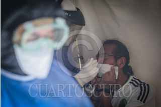 CIUDAD DE MÉXICO, 23MARZO2021.- Vecinos de la alcaldía Venustiano Carranza continúan asistiendo a realizarse la prueba PCR para la detección de coronavirus (covid-19) en el "kiosco" de atención ubicado en la explanada principal del metro San Lázaro. FOTO: MARIO JASSO/CUARTOSCURO.COM