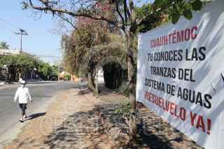 CUERNAVACA MORELOS, 23MARZO2021.- Varias mantas fueron colocadas en las calles rio Nazas, Panuco y Tamazula por la Asociación de Colonos de Vista Hermosa, donde denuncian que desde hace tres meses no tienen servicio de agua potable, no obstante, el Sistema de Agua Potable y Alcantarillado de Cuernavaca (SAPAC) les cobra puntualmente. Exigen que el presidente municipal Francisco Villalobos Adán resuelva el problema y también que el gobernador Cuauhtémoc Blanco intervenga, pues el fue alcalde y conoce de la corrupción en el SAPAC. FOTO: MARGARITO PÉREZ RETANA /CUARTOSCURO.COM