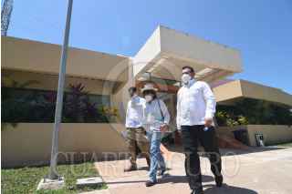 CAMPECHE, CAMPECHE, 23MARZO2021.- Durante su primer día de gira de trabajo Josefina Gómez Álvarez, titular de la SEP, sostuvo una reunión privada con el Secretario de Educación de Campeche, Ricardo Koh Cambranis, y con autoridades educativas del estado, en la reunión se presentó el plan para la reactivación mixta de los servicios educativos, además de las condiciones en las que se encuentran los planteles educativos, después recorrieron la escuela primaria urbana federal "Lázaro Cárdenas", en el municipio de SeybaPlaya, cuya infraestructura se está mejorando mediante el programa "La Escuela es Nuestra”. Gómez Álvarez comentó que es momento de tomar a la nueva normalidad, la cual se trabajara con la participación social, un proceso donde se está analizando y haciendo el diagnóstico para el regreso a clases en el próximo ciclo escolar en todos los niveles educativos. De igual forma anunció que no habrá reprobados durante este ciclo escolar. FOTO: MICHAEL BALAM/CUARTOSCURO.COM