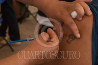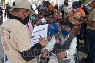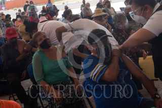 CHIMALHUACÁN, ESTADO DE MÉXICO, 23MARZO2021.- Cientos de adultos mayores, acompañados de sus familiares, acudieron a la aplicación de la primera dosis de la vacuna contra Covid-19 Coronavac en los Centros de Vacunación Hospital Materno Infantil "Vicente Guerrero" y el Recinto Ferial. Los requsitos que se solicitan para la vacunación es copia del INE, copia de CURP y registro en plataforma federal. El horario de atención será de 9 a 17 horas en cuatro centros para este municipio. FOTO: GRACIELA LÓPEZ /CUARTOSCURO.COM