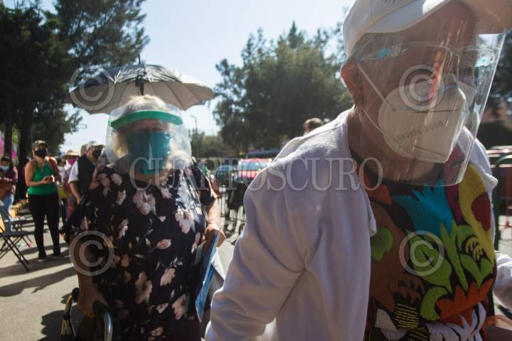CIUDAD DE MÉXICO. 24MARZO2021.- Hoy se inició la campaña de vacunación a adultos mayores, de la alcaldía de Coyoacán; en el Centro de eventos de la UNAM. FOTO: VICTORIA VALTIERRA/CUARTOSCURO.COM