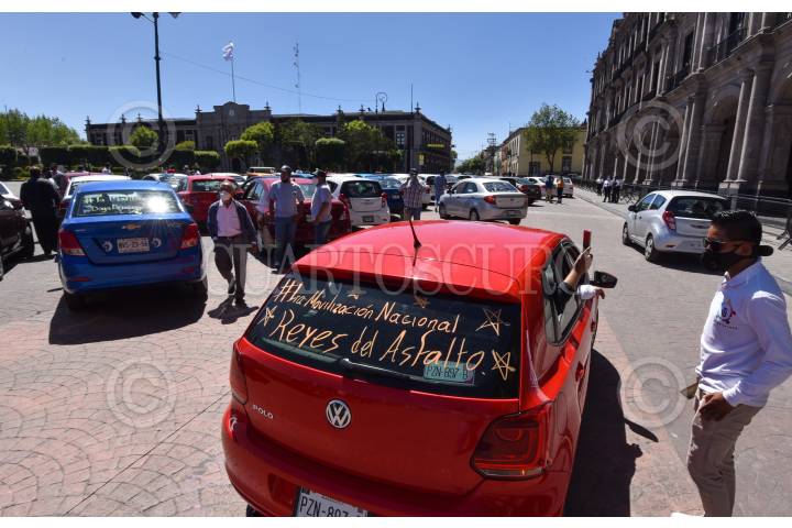 TOLUCA, ESTADO DE MÉXICO, 24MARZO2021.- La Unión de Conductores y repartidores de Apps del Valle de Toluca se unieron a la manifestación nacional de plataformas, realizando de manera pacífica la clausura simbólica en las oficinas de Didi y Uber, y un plantón en la Plaza de los Mártires, exigiendo tarifas justas para usuarios y choferes, seguridad para poder realizar su trabajo, ya que son víctimas de robo, extorsión y secuestro. FOTO: CRISANTA ESPINOSA AGUILAR /CUARTOSCURO.COM