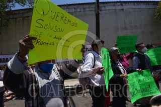 TOLUCA, ESTADO DE MÉXICO, 24MARZO2021.- Organizaciones de diferentes grupos agrarios de Toluca, Lerma, San Mateo Atenco, Zinacantepec, Valle de Bravo, Ocuilan, Ocoyoacac y Temascaltepec se manifestaron en el Tribunal Unitario Agrario Distrito número 9 exigiendo la destitución de la magistrada María Antonieta Villegas López por el retraso en la impartición de justicia respecto a diversos procesos agrarios. FOTO: CRISANTA ESPINOSA AGUILAR /CUARTOSCURO.COM