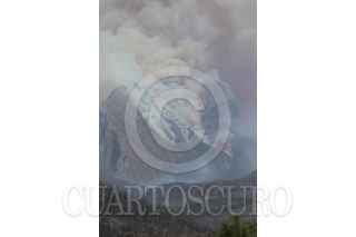 SALTILLO, COAHUILA, 24MARZO2021.- El incendio forestal registrado en Arteaga se ha extendido a la Sierra de Santiago Nuevo León, en el lugar ya trabajan elementos de Fuerza Civil del estado. FOTO: ALEJANDRO RODRÍGUEZ/CUARTOSCURO.COM