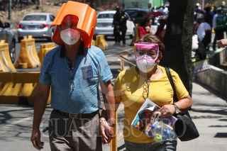 CIUDAD DE MÉXICO, 24MARZO2021.- Una pareja de adultos mayores caminan por la periferia del Parque de Diversiones Six Flags, momentos antes de ser vacunados contra COVID-19. FOTO: ROGELIO MORALES /CUARTOSCURO.COM