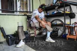 CANCÚN, QUINTANA ROO, 24MARZO2021.- El 8 junio del 2020 cambio la vida por completo de Yair de Jesús Jiménez Godinez cuando al salir a su entrenamiento habitual donde el es el coach varios ciclistas fueron embestidos por un camión en una avenida de Cancún , donde se reportó un muerto y varios heridos, Yair fue trasladado al hospital donde más tarde se confirmó la perdida de su pierna derecha, originario de Chiapas donde fue campeón en ciclismo de ruta, campeón en Guadalajara donde su entrenador Javier Saavedra entrenador de la selección nacional lo ayudó y lo hizo ganar muchas carreras, posteriormente desde el 2004 representa a Quintana Roo y fue el ganador del Gran Fondo de Nueva York en Cozumel y en el 2019 gano el segundo lugar, Yair empezó su carrera a los 15 años actualmente tiene 41 años y se dedica a la reparación de bicicletas en un pequeño taller en su casa y maneja la barredora con su equipo , agradece estar vivo y espera continuar rodando ya que es su vida, Yair ya recibió por medio de donaciones una protesis con la que espera volver a "darle con todo"como el dice y espera pronto poder adquirir nuevamente una bicicleta. FOTO: ELIZABETH RUIZ/CUARTOSCURO.COM