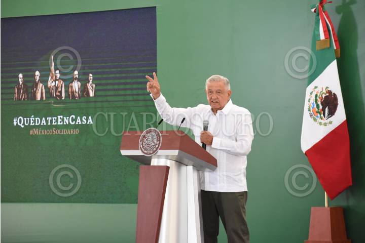 CAMPECHE, CAMPECHE, 25MARZO2021.- Andrés Manuel López Obrador, presidente de México encabezó la conferencia matutina en Campeche, acompañado por el Gobernador del estado Carlos Miguel Aysa González; Olga Sánchez Cordero, Secretaría de Gobernación; Rosa Icela Rodríguez Velázquez, Secretaría de seguridad y Protección Ciudadana y Luis Rodríguez Bucio, General de la Guardia Nacional. FOTO: MICHAEL BALAM/CUARTOSCURO.COM