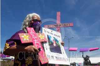 NEZAHUALCÓYOTL, ESTADO DE MÉXICO, 25MARZO2021.- Irinea Buendía, madre de Mariana Lima Buendía, víctima de feminicidio el 27 de junio del 2010, encabezó una marcha para exigir justicia en memoria de la vida de su hija, quién hoy cumpliría 40 años. La protesta se realizó en la Antimonumenta y alrededor de Palacio Municipal. El esposo de Mariana Lima, Julio César Hernández, excomandante de la Policía Judicial de Chimalhuacán, es el presunto culpable y actualmente se encuentra privado de su libertad en el penitenciario de Nezahualcóyotl en espera de su sentencia. Irinea Buendía Cortés logró que la Suprema Corte de Justicia de la Nación estableciera la investigación de las muertes violentas de las mujeres con perspectiva de género llamadas feminicidios. FOTO: GRACIELA LÓPEZ /CUARTOSCURO.COM