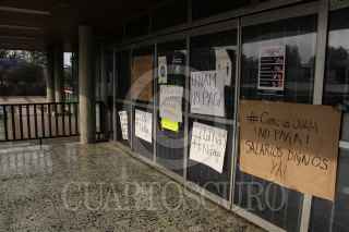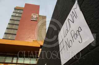 CIUDAD DE MÉXICO, 25MARZO2021.- Un grupo de profesores se manifestaron frente a la Rectoría de la Universidad Autónoma de México, los inconformes exigen un pago inmediato de sus salarios atrasados. En imagen aspectos de carteles colocados en rectoría. FOTO: ROGELIO MORALES /CUARTOSCURO.COM
