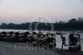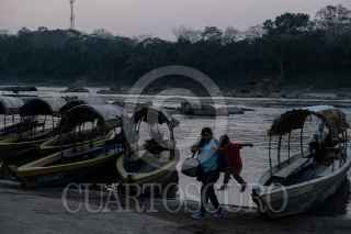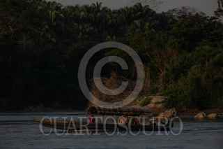 FRONTERA COROZAL, CHIAPAS, 25MARZO2021.- Decenas de migrantes cruzan la frontera con Guatemala por el Río Usumasinta atraves de lanchas para continuar su camino a pie rumbo al norte del territorio mexicano. Por varios días los migrantes caminan sobre la carretera y despues sobre las vías del tren esperando ahora debido a la construcción del tren maya, abordar el tren en la región de Coatzacoalcos, Veracruz. Los huracanes Eta e Iota han obligados a miles de personas a abandonar sus paises de origen más alla de la pobreza, corrupción, violencia y falta de empleos que son las causas recurrentes de migrar. FOTO: ISABEL MATEOS /CUARTOSCURO.COM