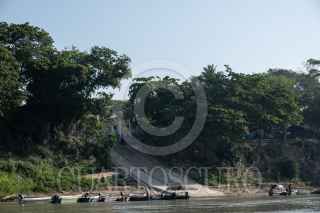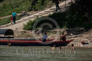 LA TECNICA, GUATEMALA, 26MARZO2021.- Decenas de migrantes cruzan la frontera con Guatemala por el Río Usumacinta por medio de lanchas para continuar su camino a pie rumbo al norte del territorio mexicano. Por varios días los migrantes caminan sobre la carretera y después sobre las vías del tren esperando ahora debido a la construcción del tren maya, abordar el tren en la región de Coatzacoalcos, Veracruz. Los huracanes Eta e Iota han obligados a miles de personas a abandonar sus países de origen más allá de la pobreza, corrupción, violencia y falta de empleos que son las causas recurrentes de migrar. FOTO: ISABEL MATEOS /CUARTOSCURO.COM