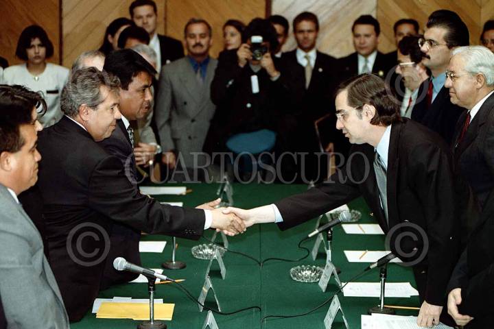 Amalia García presidenta del PRD y Cuauhtémoc Cárdenas candidato presidencial durante el encuentro con la Asociación Nacional de Autoridades Locales de México del PRD.