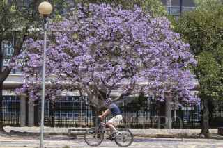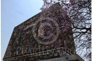 CIUDAD DE MÉXICO, 26MARZO2021.- Tras la entrada de la primavera la Biblioteca Central de la Universidad Autónoma de México se blinda con grandes árboles de jacarandas teñidos de violeta en Ciudad Universitaria. FOTO: ROGELIO MORALES /CUARTOSCURO.COM