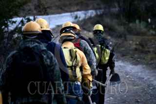 ARTEAGA, COAHUILA, 26MARZO2021.- Al rededor de 20 brigadistas voluntarios, de diferentes partes del estado, como Múzquiz, Boquillas y Monclova, continúan combatiendo el incendio en la sierra de "El Baratillo, donde ya han sido consumidos más de tres mil hectáreas. Algunos de los pobladores les proporcionan víveres a los brigadistas, quiene duermen solo unas horas para continuar sus labores a muy tempranas horas. FOTO: ALEJANDRO RODRÍGUEZ/CUARTOSCURO.COm