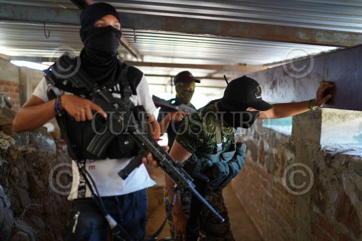 TEPALCATEPEC, MICHOACÁN, 26MARZO2021.-Autodefensas del municipio de Tepalcatepec construyen fortines en las diferentes zonas de su municipio y mantiene una barricada en la comunidad de Pinolapan que se localiza en la carretera nacional Tepalcatepec -Coalcomán, informaron que esa medida la tomaron para evitar el avance de las caravanas del CJNG, que lleva ya una semana de interminables ataques en contra de sus comunidades. El pasado 21 de febrero, habitantes del municipio de Tepalcatepec reportaron un enfrentamiento horas después elementos de la Policía Michoacán, la Secretaría de la Defensa Nacional (Sedena) y de la Guardia Nacional (GN) montaron un operativo donde encontraron abandonadas dos camionetas con blindaje artesanal, una marca Lincoln y otra Chevrolet. FOTO: JUAN JOSÉ ESTRADA SERAFÍN /CUARTOSCURO.COM