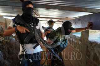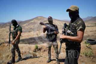 TEPALCATEPEC, MICHOACÁN, 26MARZO2021.-Autodefensas del municipio de Tepalcatepec construyen fortines en las diferentes zonas de su municipio y mantiene una barricada en la comunidad de Pinolapan que se localiza en la carretera nacional Tepalcatepec -Coalcomán, informaron que esa medida la tomaron para evitar el avance de las caravanas del CJNG, que lleva ya una semana de interminables ataques en contra de sus comunidades. El pasado 21 de febrero, habitantes del municipio de Tepalcatepec reportaron un enfrentamiento horas después elementos de la Policía Michoacán, la Secretaría de la Defensa Nacional (Sedena) y de la Guardia Nacional (GN) montaron un operativo donde encontraron abandonadas dos camionetas con blindaje artesanal, una marca Lincoln y otra Chevrolet. FOTO: JUAN JOSÉ ESTRADA SERAFÍN /CUARTOSCURO.COM