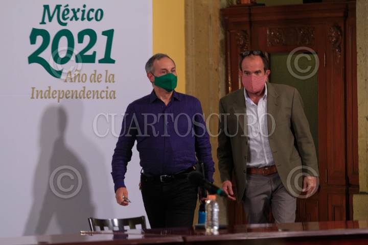 CIUDAD DE MÉXICO, 26MARZO2021.- Hugo López-Gatell, subsecretario de Salud, y Ruy López, director General del Centro Nacional de Programas Preventivos y Control de Enfermedades, encabezaron el informe diario sobre la pandemia del Covid-19. FOTO: GRACIELA LÓPEZ /CUARTOSCURO.COM