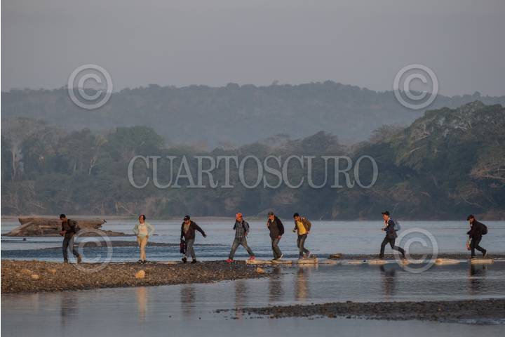 FRONTERA COROZAL, CHIAPAS, 27MARZO2021.- Cientos de migrantes en su mayoría hondureños cruzan la frontera entre México y Guatemala por el Río Usumacinta en lanchas. México impuso nuevas medidas para controlar la entrada de personas al país con actividades no escenciales, por tal motivo se han desplegado elementos del Instituto Nacional de Migración, Guardia Nacional y Ejercito, pero a la zona entre La Tenica y Fonrtera Corozal el transito continua sin cambios. FOTO: ISABEL MATEOS /CUARTOSCURO.COM
