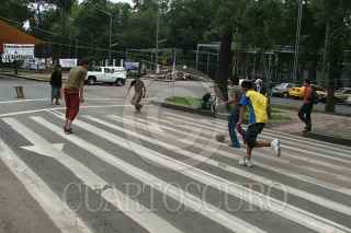 MEXICO, D.F., 02AGOSTO2006.- Los simpatizantes de Andrés Manuel López Obrador, quienes permanecen en plantón desde el domingo, aprovechan que no hay paso de vehículos sobre Reforma para jugar una cascarita. FOTO: Saúl López/CUARTOSCURO.COM