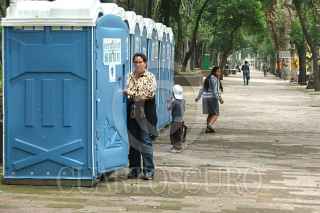 MEXICO, D.F., 02AGOSTO2006.- Instalan sanitarios portatiles sobre la Av. Reforma para cubrir las necesidades basicas de personas que se encuentran en el planton permanente en apoyo a AMLO FOTO: Saúl López/CUARTOSCURO.COM