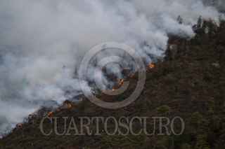 BARATILLO, COAHUILA, 27MARZO2021.- Continúa el fuerte incendio en el Ejido El Baratillo, que sigue sin ser controlado y ha afectado más de 3 mil hectáreas de Coahuila y se expande debido a las condiciones del clima, llegando a los límites del Cañón de Jamé, en la comunidad de Potrero de Abrego. Se espera en las próximas horas un avión DC-10 realice descargas de agua para sofocar los incendios tanto en coahuila como en nuevo León. FOTO: ALEJANDRO RODRÍGUEZ /CUARTOSCURO.COM