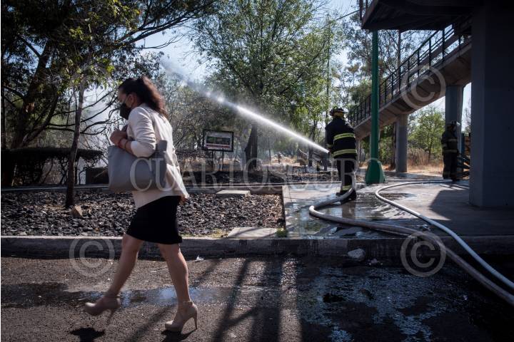 CIUDAD DE MÉXICO, 28MARZO2021.- Un conato de incendio fue controlado por el Cuerpo de Bomberos de la UNAM, a un costado de avenida Insurgentes a la altura del Metrobus Centro Cultural Universitario, cuando este amagaba apenas con expandirse a otras área. FOTO: PEDRO ANZA /CUARTOSCURO.COM