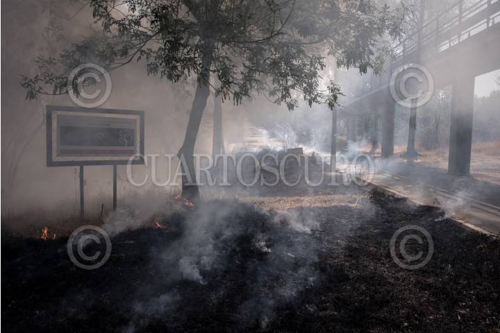 CIUDAD DE MÉXICO, 28MARZO2021.- Un conato de incendio fue controlado por el Cuerpo de Bomberos de la UNAM, a un costado de avenida Insurgentes a la altura del Metrobus Centro Cultural Universitario, cuando este amagaba apenas con expandirse a otras área. FOTO: PEDRO ANZA /CUARTOSCURO.COM