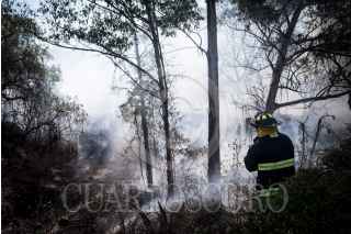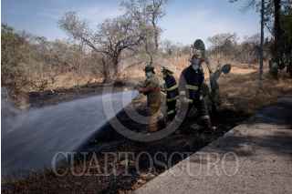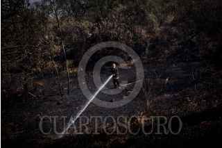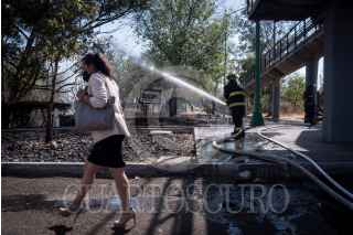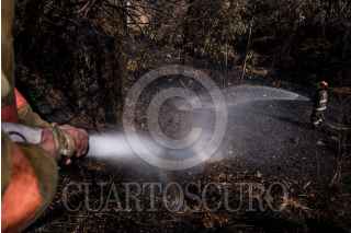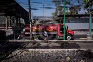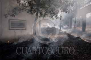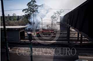 CIUDAD DE MÉXICO, 28MARZO2021.- Un conato de incendio fue controlado por el Cuerpo de Bomberos de la UNAM, a un costado de avenida Insurgentes a la altura del Metrobus Centro Cultural Universitario, cuando este amagaba apenas con expandirse a otras área. FOTO: PEDRO ANZA /CUARTOSCURO.COM