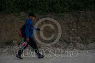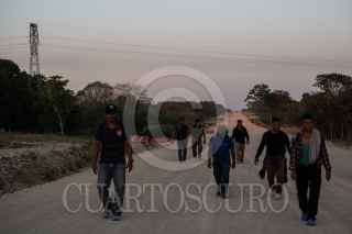 PALENQUE, CHIAPAS, 28MARZO2021.- Un grupo de migrantes hondureños camina sobre unos de los tramos de construcción del Tren Maya rumbo al norte del país. Las afectaciones de las tormentas Eta e Iota aunado a la pobreza, violencia, falta de empleos, incrementos en el pago de servicios básicos han obligado a las personas a abandonar sistemáticamente sus hogares y familias en busca de oportunidades para tener una mejor vida. FOTO: ISABEL MATEOS /CUARTOSCURO.COM
