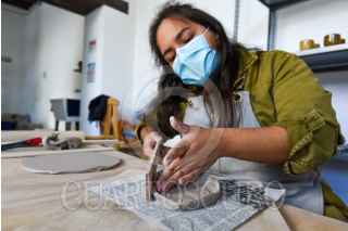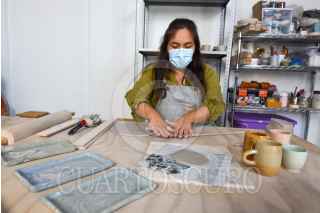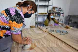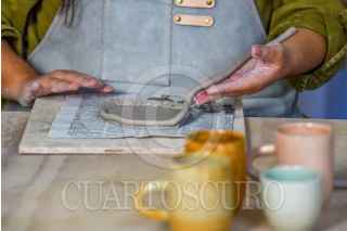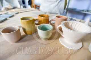 TOLUCA, ESTADO DE MÉXICO, 29MARZO2021.- Valeria Hernández y Dulce Xocolatl fundaron en el 2017 el colectivo Tamiz que busca unir a quienes tienen la pasión por la cerámica, a pesar de que en Toluca no existe una tradición ceramista ya que muchos piensan que es una simple manualidad, se necesita de paciencia, tiempo y conocimiento del material para lograr el resultado deseado; lo que más elaboran son piezas utilizarías como platos, tazas, vasos, macetas. Instalaron un taller en el centro de Toluca en donde impartían diversos talleres pero a raíz de la pandemia por COVID-19 tuvieron que innovar y venden kits de cerámica para trabajar desde casa, así como videos tutoriales en donde guían los procedimientos. Buscan entender el gusto por la cerámica en la capital mexiquense. FOTO: CRISANTA ESPINOSA AGUILAR /CUARTOSCURO.COM