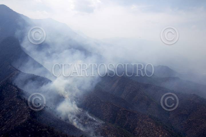 SANTIAGO, NUEVO LEÓN, 29MARZO2021.- El incendio forestal que inició en Arteaga, Coahuila y se extendió a la sierra de Santiago en Nuevo León, se encuentra controlado, según informes de Protección Civil del estado. Actualmente se combaten tres áreas de la sierra por tierra y aire; las comunidades de Laguna de Sánchez, San Isidro y Ciénega del Álamo, cuyos habitantes evacuados esperan se termine el siniestro en un hotel cerca del área de la Cola de Caballo. Los vuelos para sofocar el incendio superan las 40 vueltas por cada vehículo aéreo y descargan hasta dos mil, 500 litros de agua por viaje. FOTO: GABRIELA PÉREZ MONTIEL / CUARTOSCURO.COM