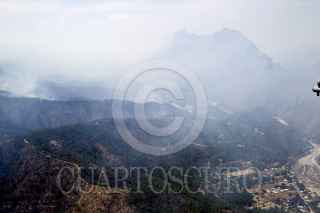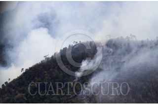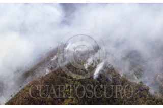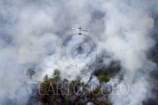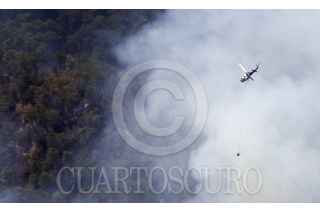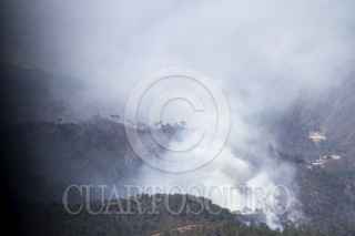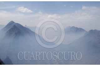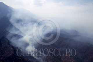 SANTIAGO, NUEVO LEÓN, 29MARZO2021.- El incendio forestal que inició en Arteaga, Coahuila y se extendió a la sierra de Santiago en Nuevo León, se encuentra controlado, según informes de Protección Civil del estado. Actualmente se combaten tres áreas de la sierra por tierra y aire; las comunidades de Laguna de Sánchez, San Isidro y Ciénega del Álamo, cuyos habitantes evacuados esperan se termine el siniestro en un hotel cerca del área de la Cola de Caballo. Los vuelos para sofocar el incendio superan las 40 vueltas por cada vehículo aéreo y descargan hasta dos mil, 500 litros de agua por viaje. FOTO: GABRIELA PÉREZ MONTIEL / CUARTOSCURO.COM