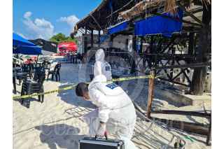 CANCÚN, QUINTANA ROO, 29MARZO2021.- Una mujer y un hombre fueron atacados a balazos, este último resultó muerto y ella lesionada, en Playa Tortugas, ubicada en el kilómetro 7.5 de la zona hotelera. Al lugar llegaron elementos de emergencia para sacar a la mujer del lugar en una camilla, y se presume que era empleada o vendedora, ya que no vestía ropa de playa. Lo mismo que el hombre, al parecer trabajaba como mesero en esta zona. FOTO: ESPECIAL/CUARTOSCURO.COM