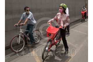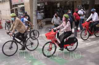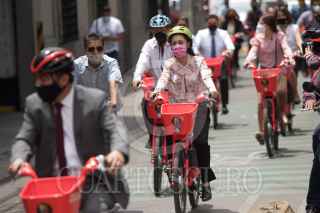 CIUDAD DE MÉXICO. 29MARZO2021.- Claudia Sheinbaum Pardo, jafa del Gobierno de la Ciudad de México; acompañada de Andrés Lajous, de Semov y al alcalde de Azcapotzalco realizoron un paseo en Bicicleta; hacía el evento de Consejo Consultivo Vallejo, en el esta demarcación. FOTO: VICTORIA VALTIERRA/CUARTOSCURO.COM