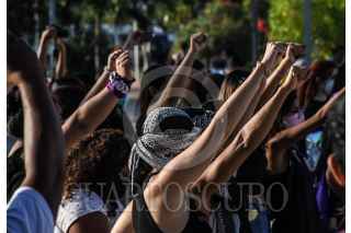 CANCÚN, QUINTANA ROO, 29MARZO2021.- Integrantes de diez colectivas feministas se manifestaron en la Plaza de la Reforma del Palacio Municipal de Cancún, para exigir justicia por los feminicidios de Victoria Salazar, mujer salvadoreña que murió tras ser arrestada de manera violenta; y por el asesinato de Karla, conductora de taxi, ocurrido en Holbox. FOTO: ELIZABETH RUIZ/CUARTOSCURO. COM