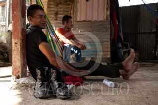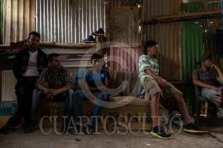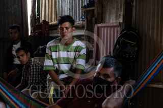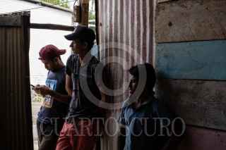 JUAREZ, TABASCO, 30MARZO2021.- Un grupo de migrantes hondureños toma un descanso después de caminar sobre las vías del tren desde Salto de Agua. Por la madrugada continuaran su camino en dirección a Coatzacoalcos y así intentar abordar el tren La Bestia, el cual los acercara a la frontera norte del territorio mexicano. FOTO: ISABEL MATEOS /CUARTOSCURO.COM