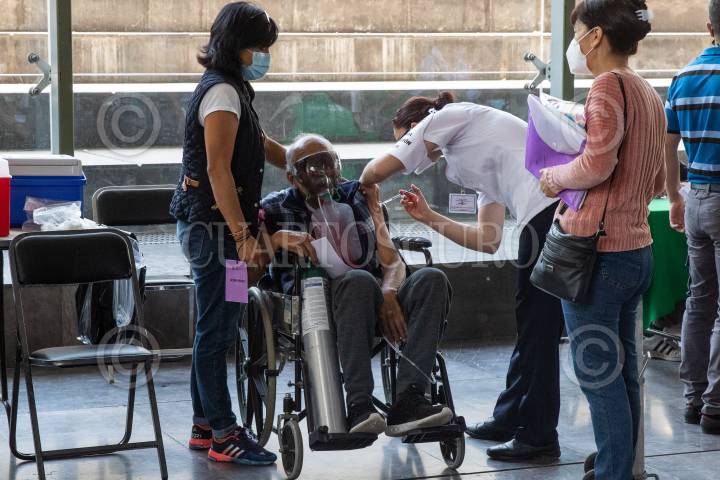 CIUDAD MÉXICO, 30MARZO2021.- Inició la Jornada Nacional de Vacunación en la alcaldía Cuauhtémoc, la cual será tres sedes: Universidad La Salle; la Biblioteca Vasconcelos, y la Escuela Primaria Juárez. La vacuna contra el Covid-19 que será utilizada para esta localidad AztraZeneca. Desde tempranas horas adultos mayores en la Bblioteca Vasconcelos donde el tiempo de espera en la fila era alrededor de una hora. FOTO: MOISÉS PABLO/CUARTOSCURO.COM