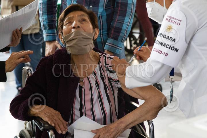 CIUDAD MÉXICO, 30MARZO2021.- Inició la Jornada Nacional de Vacunación en la alcaldía Cuauhtémoc, la cual será tres sedes: Universidad La Salle; la Biblioteca Vasconcelos, y la Escuela Primaria Juárez. La vacuna contra el Covid-19 que será utilizada para esta localidad AztraZeneca. Desde tempranas horas adultos mayores en la Bblioteca Vasconcelos donde el tiempo de espera en la fila era alrededor de una hora. FOTO: MOISÉS PABLO/CUARTOSCURO.COM