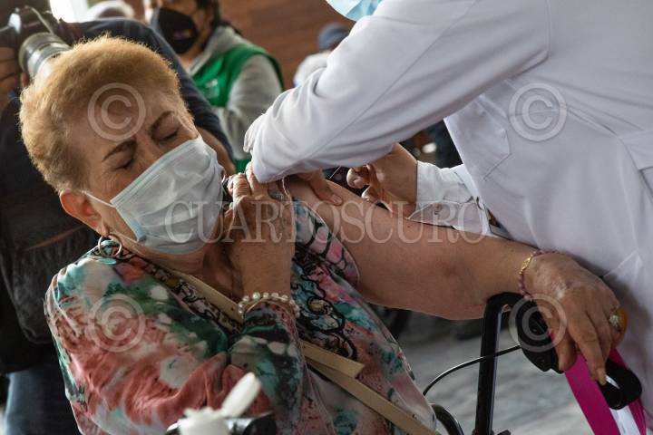 CIUDAD MÉXICO, 30MARZO2021.- Inició la Jornada Nacional de Vacunación en la alcaldía Cuauhtémoc, la cual será tres sedes: Universidad La Salle; la Biblioteca Vasconcelos, y la Escuela Primaria Juárez. La vacuna contra el Covid-19 que será utilizada para esta localidad AztraZeneca. Desde tempranas horas adultos mayores en la Bblioteca Vasconcelos donde el tiempo de espera en la fila era alrededor de una hora. FOTO: MOISÉS PABLO/CUARTOSCURO.COM