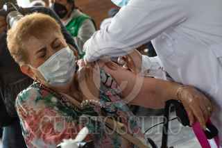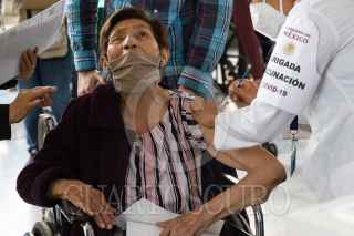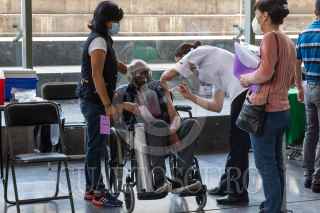 CIUDAD MÉXICO, 30MARZO2021.- Inició la Jornada Nacional de Vacunación en la alcaldía Cuauhtémoc, la cual será tres sedes: Universidad La Salle; la Biblioteca Vasconcelos, y la Escuela Primaria Juárez. La vacuna contra el Covid-19 que será utilizada para esta localidad AztraZeneca. Desde tempranas horas adultos mayores en la Bblioteca Vasconcelos donde el tiempo de espera en la fila era alrededor de una hora. FOTO: MOISÉS PABLO/CUARTOSCURO.COM