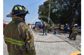 METEPEC, ESTADO DE MÉXICO, 30MARZO2021.- Trabajadores de la Subdirección de Prevención y Control de Enfermedades del ISEM fueron desalojados del inmueble al registrarse una fuga de gas en la avenida Estado de México, mientras se realizaban trabajos en una construcción, bomberos de Metepec acudieron al lugar y se realizaron los trabajos de reparación de la fuga. FITO: CRISANTA ESPINOSA AGUILAR /CUARTOSCURO. COM