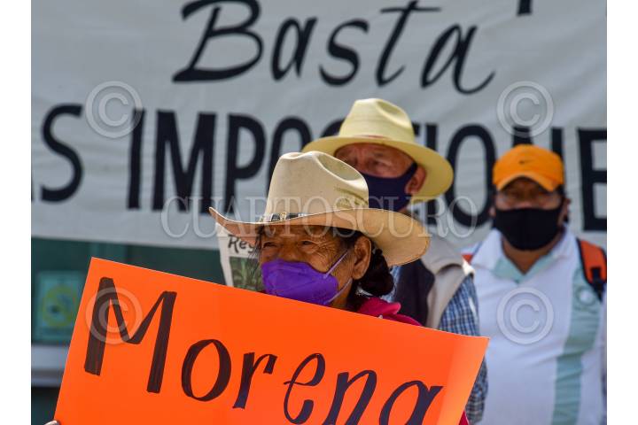 TOLUCA, ESTADO DE MÉXICO, 30MARZO2021.- Militantes de MORENA en Jiquipilco se manifestaron en el edificio del Instituto Electoral del Estado de México (IEEM) en desacuerdo a la designación de candidatos de la alianza PT-MORENA en este municipio. FOTO: CRISANTA ESPINOSA AGUILAR /CUARTOSCURO.COM