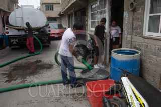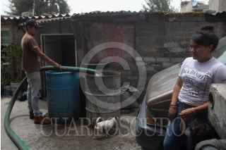 CIUDAD DE MÉXICO, 31MARZO2021.- Vecinos de la colonia Ampliación Polvorilla, alcaldía Iztapalapa, recibieron el abastecimiento de agua en sus hogares por pipas que solicitan en el módulo de la colonia Desarrollo Quetzalcóatl. En esta colonia hay 140 casas que habitan alrededor de 180 familias, por lo que requieren de tres a cinco pipas de agua diariamente. Debido a los trabajos que se realizan en Cutzamala, el vital líquido tiene más escasez en las colonias que pertenecen a esta territorial de la demarcación. FOTO: GRACIELA LÓPEZ /CUARTOSCURO.COM