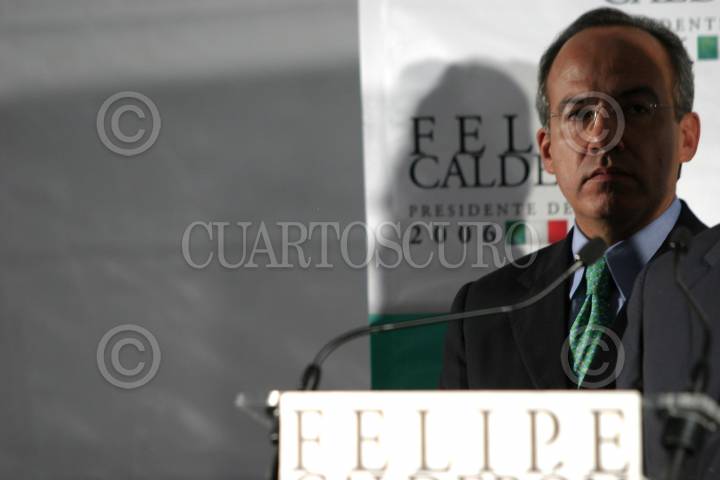 MEXICO, D.F., 08AGOSTO2006.- Felipe Calderón, candidato a la presidencia de la Repùblica por el PAN y Santiago Creel, coodinador de lo senadores electos del PAN, después de una reuniòn de Calderón con los coordinadores legislativos. FOTO: Moisés Pablo/CUARTOSCURO.COM