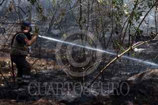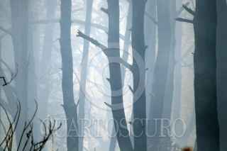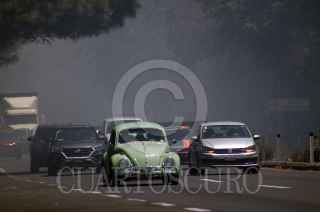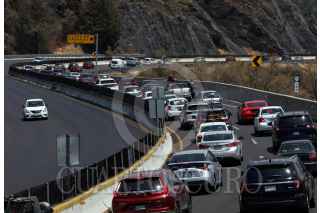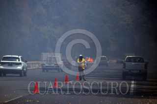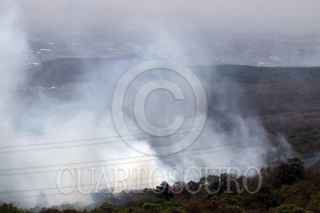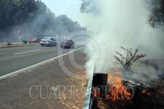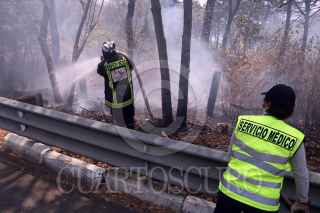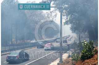 CUERNAVACA, MORELOS, 01ABRIL2021.- Un incendio forestal al noreste del capital afecto por varias horas la visibilidad en el kilómetro 74 de la autopista México-Cuernavaca. Personal de CAPUFE trabaja para sofocar el incendio que ha dañado varias hectáreas, apoyado por comuneros de Ocotepec. FOTO: MARGARITO PÉREZ RETANA /CUARTOSCURO.COM