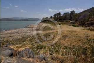 VALLE DE BRAVO, ESTADO DE MÉXICO, 03ABRIL2021.- De acuerdo al Organismo de Cuenca Aguas Del Valle de México el sistema de presas que alimentan el sistema Cutzamala descendió al 46.98 por ciento, la Presa de Valle de Bravo se encuentra al 56.5 por ciento de su capacidad, observándose en distintos puntos como baja el nivel del agua cada día más y dejando a la vista la basura qué hay en el lugar. FOTO: CRISANTA ESPINOSA AGUILAR /CUARTOSCURO.COM
