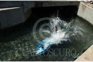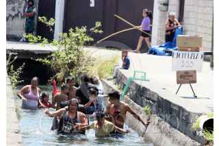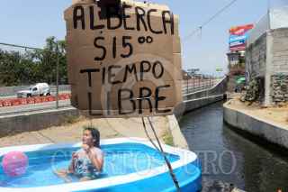CUERNAVACA, MORELOS, 03ABRIL2021.- Personas de escasos recursos acuden al canal de agua de manantial de Los Pinos a refrescarse en esta sábado de Gloria. FOTO: MARGARITO PÉREZ RETANA /CUARTOSCURO.COM