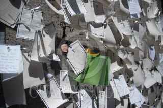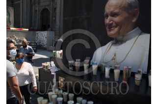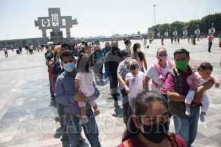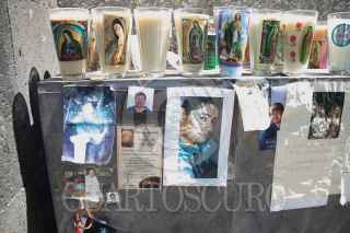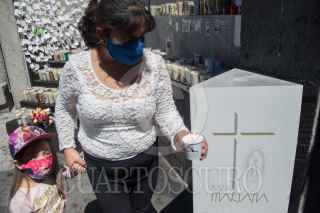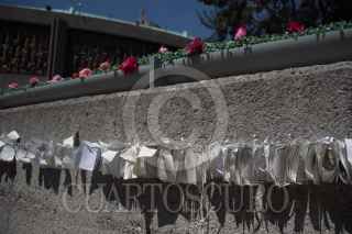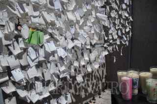 CIUDAD DE MÉXICO. 04ABRIL2021.- Muro para recordar a los muertos por Covid 19, en el atrío de la Basílica de Guadalupe. Algunas personas acuden a llevar papeles o veladoras. FOTO: VICTORIA VALTIERRA/CUARTOSCURO.COM